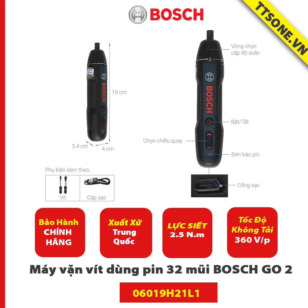 Máy vặn vít dùng pin 32 mũi BOSCH GO 2 (06019H2181) - Chính Hãng